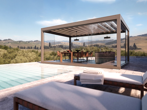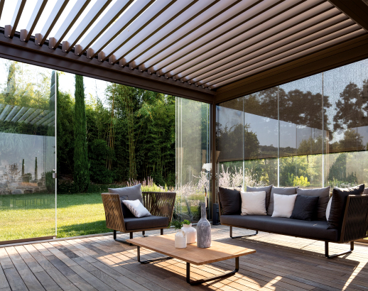 A bioklimatikus pergoláknak köszönhetően a hidegebb hónapokban sem kell lemondania a kiterjesztett élettérről. A zárt, oldalsó üvegfalak segítségével a pergola egy hangulatos télikertté alakítható. Egyszóval télen-nyáron kihasználhatja a természetes fény és szabad levegő minden előnyét.